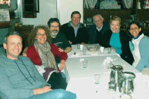 Noam Ebner, Sharon Press, Barry Kantrowitz, John Lande, David Matz, Ann Harrell, and Yael Efron in a Jerusalem cafe on New Year’s Day.