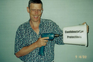 Ron Kelly was on a legendary session about the Uniform Mediation Act. He listed a long list of exceptions to confidentiality under the draft and, after each one, he drilled a hole in the bottom of the wastebasket shown in the photo. He built up to a dramatic crescendo and then poured a pitcher of water into the bucket to illustrate the protection under the Act. After that, Richard Reuben, who was a reporter for the Act, held up the wastebasket and said, “This is the protection with the Act.” Then he flung it aside and said, “This is the protection without the Act.” Quite a session.