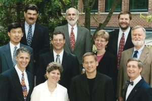 Missouri DR faculty in 2001. Back row: Jim Levin, Len Riskin, John Lande. Middle row: Ilhyung Lee, Richard Reuben, Jen Robbennolt, Jim Westbrook. Front row: Bob Baily, Jean Sternlight, Chris Guthrie, Tim Heinsz.