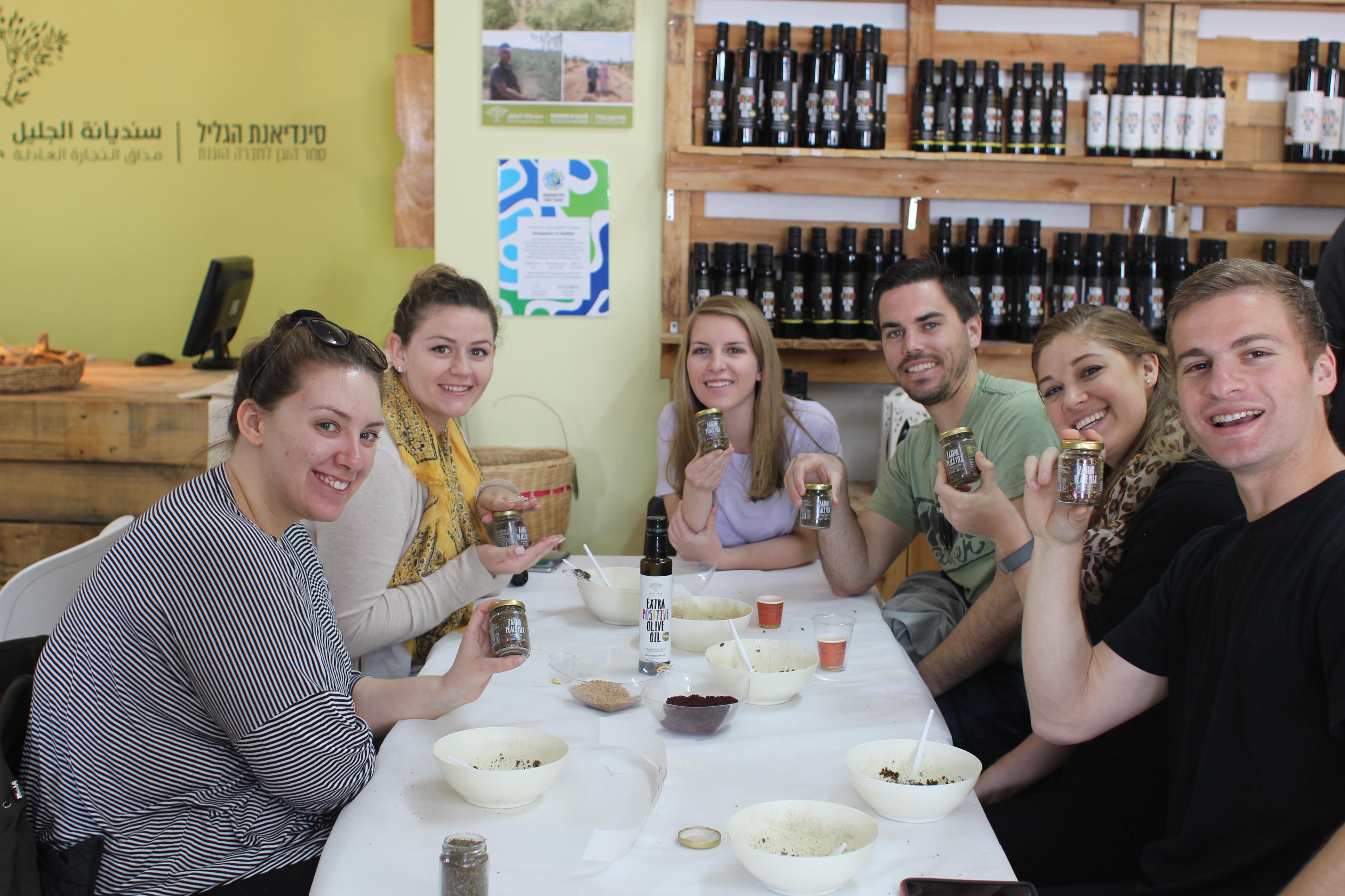 One key focus of our trip was all of the organizations working on shared society across groups in Israel. Our day of shared society started at Sindyanna of Galilee with a Za’atar workshop. Sindyanna of Galilee is a non-profit organization that employs Arab and Jewish women who aim to create a peaceful coexistence between the two cultures. The students were able to create their own Za’atar after hearing from employees on how they strive to create peace. (This was delicious! And all available on Amazon too…)