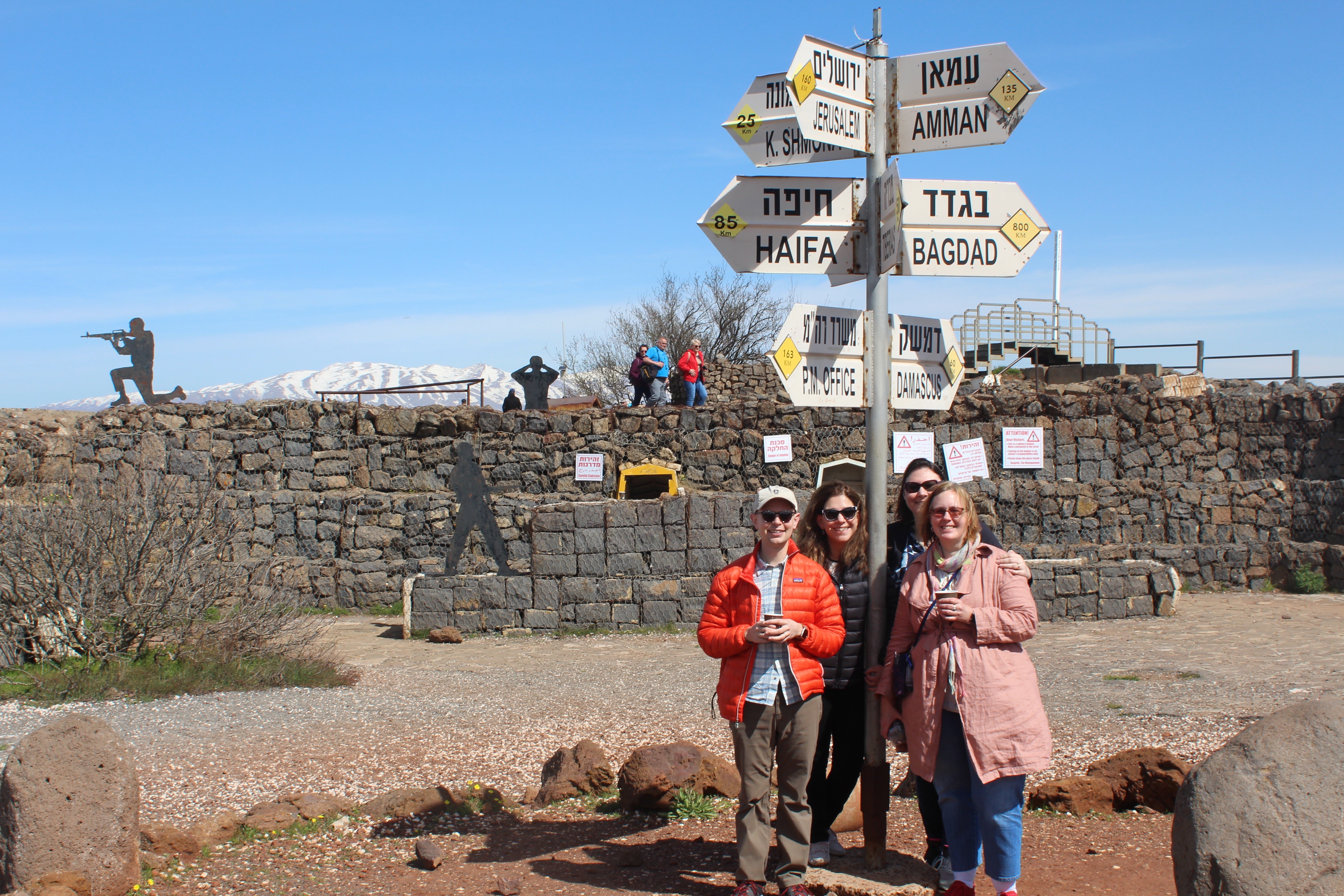 The group had a memorable night at the kibbutz and were very sad to leave the cozy cottages we were able to stay in. Our busy day (Tuesday) of sight-seeing started with a visit to Mount Bental. At the peak of Mt. Bental we had views of Golan and Syria. Taylor Brisco and her friends went into the army bunker to imagine what it was like to be a solider during the 1973 Yom Kippur War. Ms. Brisco said “Visiting Mount Bental was one of my favorite activities due to the historical significance of the mountain peak and also for the amazing view of Golan—and even Syria.” Below is a view from the bunker over to Mt. Hermon where this is still snow…