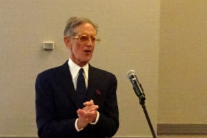 Josh Stulberg received this year’s scholarship award and during his acceptance speech, he led the audience in a rousing version of the touching British World War II Song, “We’ll Meet Again, which was sung by Vera Lynn, “The Forces’ Sweetheart.” Here are the lyrics and you can see shots of Josh and the chorus, below.