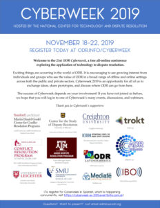 Cyberweek 2019, hosted by the National Center for Technology and Dispute Resolution, will take place November 18-22.