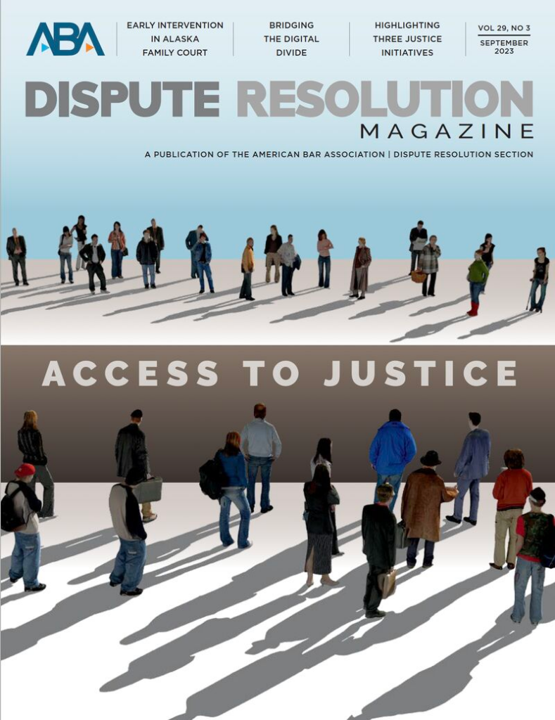 The latest issue of the ABA Dispute Resolution Section’s magazine, aptly titled Dispute Resolution Magazine, is out and focuses on issues of access to justice.  Here’s an excerpt from the letter from the board introducing the issue: