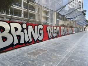 Day Four of our trip to Israel. Our first real day in Tel Aviv, a day that put faces to names, and helped to contextualize the situation occurring in Israel today. The hostages. The innocent civilians were snatched from their homes. Day Four introduced four key words: Bring Them Home Now.
